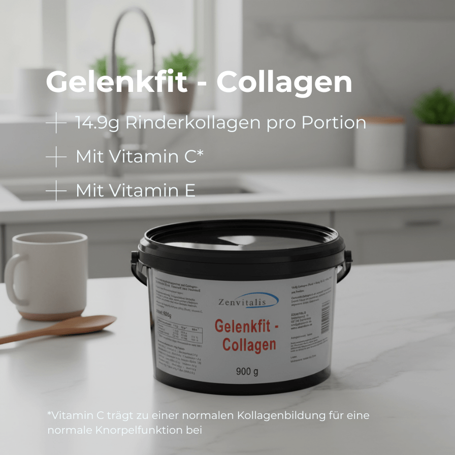 Kollagen ist ein strukturelles Eiweiß, das in vielen Geweben des Körpers vorkommt – besonders in Knorpel, Sehnen, Bändern und Haut. Es sorgt dort für Festigkeit, Elastizität und Belastbarkeit. In Gelenken bildet es die Grundlage für einen gesunden Knorpel und trägt dazu bei, Bewegungen reibungslos und schmerzfrei zu halten. Die hydrolisierte Form von Kollagen soll besonders leicht über die Nahrung aufgenommen werden.