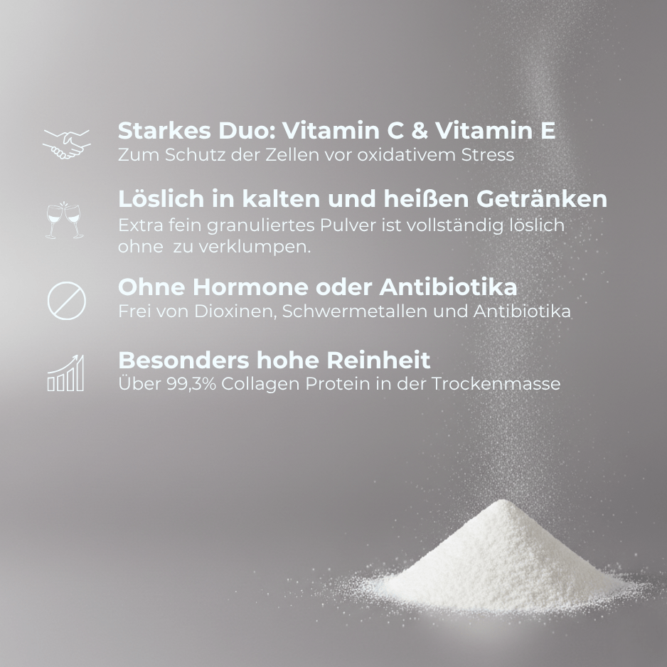 Wieso die Kombination aus Kollagenhydrolysat (Rind) + Vitamin C + Vitamin E?