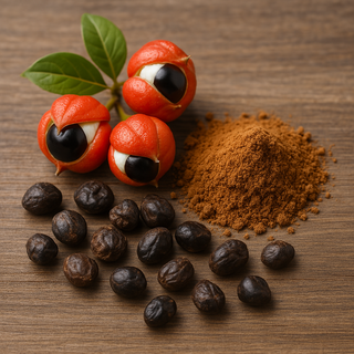 Guarana ist eine Pflanze aus dem Amazonasgebiet, deren Samen reich an natürlichem Koffein sind. Die kleinen, rot-orangefarbenen Früchte enthalten schwarze Samen, die traditionell getrocknet, geröstet und zu Pulver verarbeitet werden.