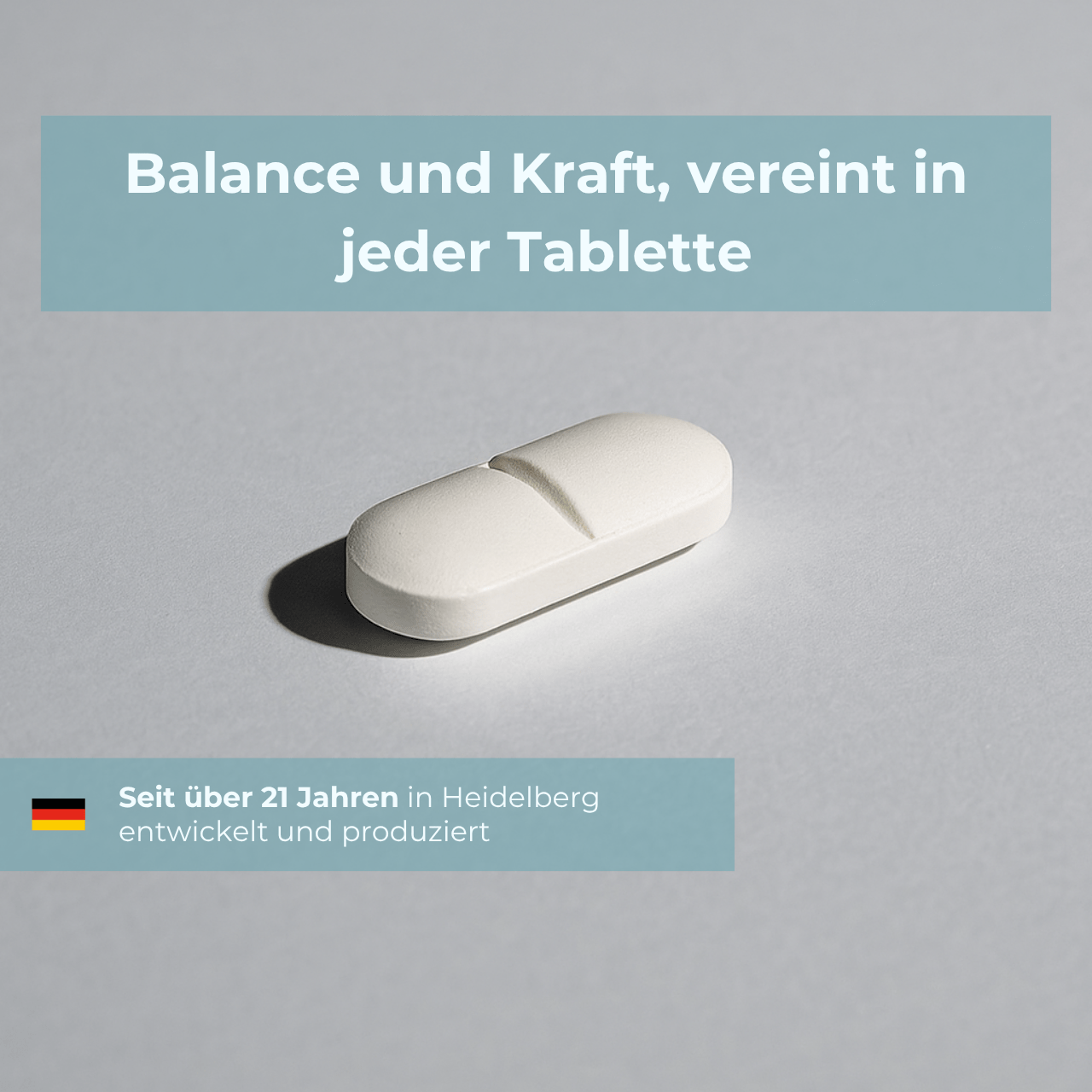 Die Kombination aus Magnesium und den Vitaminen B1, B6 und B12 unterstützt den normalen Energiestoffwechsel, die Funktion von Muskeln und Nerven – und trägt so zur Verringerung von Müdigkeit und Ermüdung bei. Jeder Inhaltsstoff wird unter Berücksichtigung wissenschaftlicher Erkenntnisse ausgwählt.
